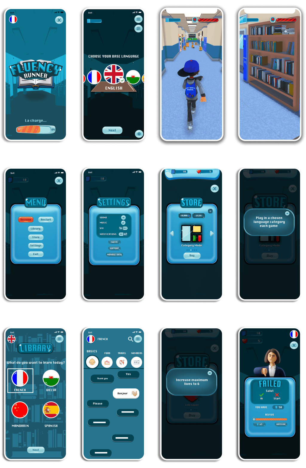 Fluency Runner is a mobile game designed to teach language vocabulary through gameplay. The goal was to combine engaging game mechanics with language learning.