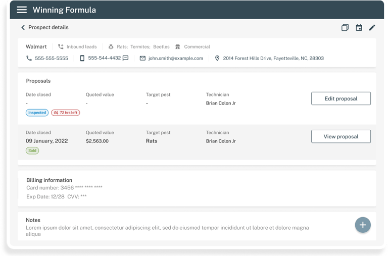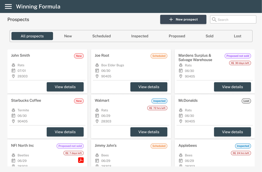 Winning Formula is an internal platform used by pest control officers to conduct investigations at client properties.
